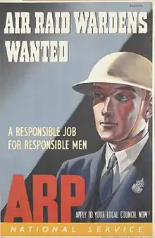 - (UK, historical) A member of an Air Raid Precautions organization, dedicated to protecting and sheltering civilians from air raids during World War II.
