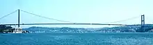 - suspension bridge (bridge where the deck or roadway is suspended from cables)