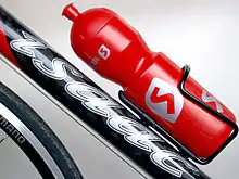 - A bottle or flask for holding a beverage such as water or wine; (specifically, sports) a water bottle which can be squeezed to squirt the beverage out of the nozzle, especially (cycling) one designed for mounting on a bicycle.