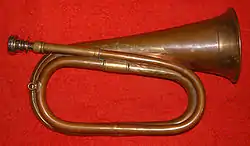 - A brass instrument without valves; a bugle.