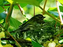 a nest nested by chaffinches (with a female chaffinch in it)