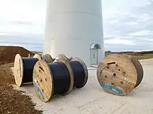 - A cable reel, on which (electrical) cable is wound for transport and ultimate use.