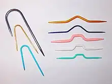 - (knitting) a type of knitting needle used to temporarily hold stitches, allowing them to be interchanged