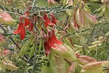 1. A legume native to Southern Africa that grows red flowers and bloated pods, often used in folk medicine; Lessertia frutescens (formerly Sutherlandia frutescens).