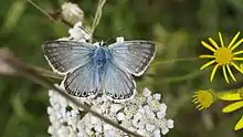 - A silver-blue butterfly, Polyommatus coridon, of the family Lycaenidae