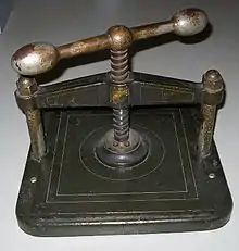 1. (historical) A machine for taking an exact copy, by pressure, of a document written in special ink on special paper.