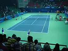 Professional tennis players playing on a tennis court (def. 5) in New Delhi, India