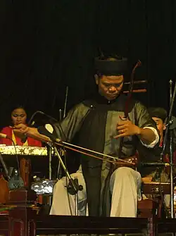 - A vertical bowed fiddle-like string instrument with two strings, originating in the traditional and classical music of Vietnam.