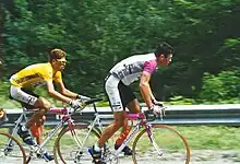 German professional cyclist Udo Bölts (right) riding as a domestique for Jan Ullrich, who went on to win the 1997 Tour de France.