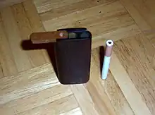 - (slang) A small portable case for equipment used to smoke marijuana.