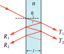 - An optical device containing parallel mirrors, used as a narrow band filter, often in laser design.