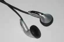 - earphones (a pair of small loudspeakers worn inside each outer ear or covering all or part of the ear, without a connecting band worn over head)