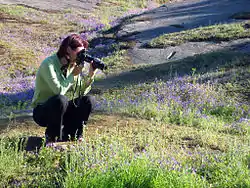 - (female) photographer (woman who takes photographs, typically as an occupation; a specialist in photography)