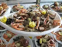 - fruits of the sea, seafood (fish, shellfish, seaweed, and other edible aquatic life)