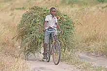 Tanzana knabo transportante furaĝon bicikle