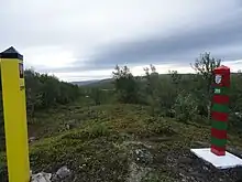 grensestolpe m (definite singular grensestolpen, indefinite plural grensestolpar, definite plural grensestolpane)