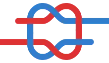 - a knot for connecting two ends of rope; similar to granny knot, but with the short ends on opposite sides; a very insecure knot, but used for parlor tricks