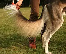 - (anatomy) a narrow tail (e.g., of most mammals)