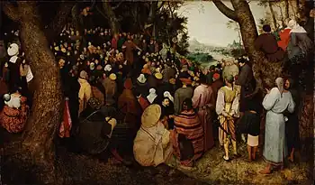 Pieter Bruegel the Elder, The Sermon of St. John the Baptist (1566, detail), Museum of Fine Arts, Budapest, Hungary. Some scholars contend that the painting depicts a clandestine sermon held by the Protestant reformers of that time.