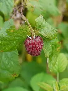From Danish hindbær, from Middle Low German *hindbere, from Old Saxon hindberi, from Proto-West Germanic *hindibaʀi, from *hindi (“doe, hind”) + *baʀi (“berry”). Compare German Himbeere, English hindberry and Faroese hindber.