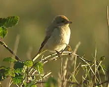 - The isabelline (or Daurian) shrike is a greyish-yellow and hunts from prominent perches, impaling the corpses on thorns as a larder.