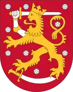 Finland's coat of arms displaying vambraced right forelimb of the lion