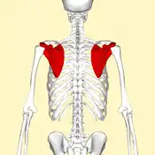 - (anatomy) shoulder blade (triangular bone behind the thorax)