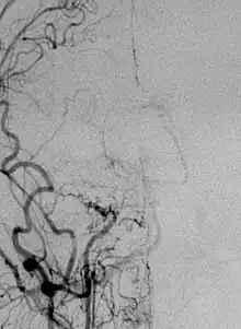 Angiogram of carotid artery of patient with moyamoya.