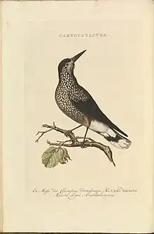 - The spotted nutcracker, a corvid bird, Nucifraga caryocatactes