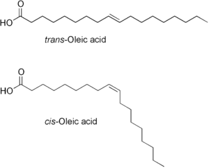 1. (organic chemistry) An unsaturated fatty acid, having 18 carbon atoms and one double bond, found in olive oil and very many other vegetable and animal oils and fats; it is used for making soap, cosmetics etc.