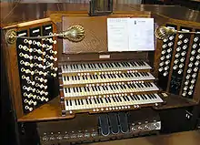 - (music) a musical instrument that has multiple pipes which play when a key is pressed (the pipe organ), or an electronic instrument designed to replicate such.