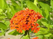 - Maltese cross, burning love (flowering plant Silene chalcedonica, syn. Lychnis chalcedonica)