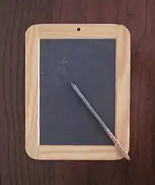 - (education, archaic) slate pencil (a pencil designed to be used on a writing slate)