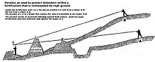 - ...an elevation of earth which is effected behind fortified places, to secure them from any attack that may be made in reverse. Parapet and parados come from terms signifying in the front or in the rear of anything.