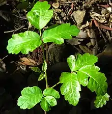 - Any of the species of Toxicodendron with compound leaves having three oak-like leaflets, native to North America.