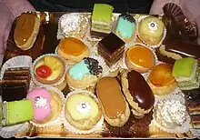 - (archaic, collective) petit fours (small bite-sized confectionery)