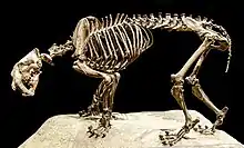 Skelet van een sabeltandtijger (Smilodon).