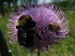 Bombus (bumblebee on left) and Apis mellifera (honeybee on right)