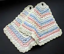 (2) A slipstitch can be used to create closed loops, such as the pegholes in these potholders.