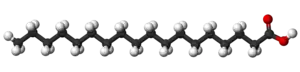 Ball-and-stick model of stearic acid: .
