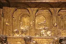 - (art) A form of bas relief developed by Donatello with very little variation in depth of carving, where the sense of depth is given by perspective rather than actual three-dimensionality.