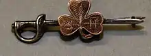 A "Sweetheart pin" with the emblem of the South Irish Horse (SIH) Regiment in World War I, sent by a soldier to his girlfriend as a memento