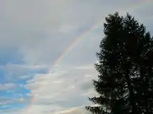 From the archaic noun szivár (“a hollow-tube glass tool used to draw wine from a barrel”, from szív (“to suck”) + -ár (noun-forming suffix)) + -vány (noun-forming suffix). The origin of the modern sense of szivárvány is the ancient belief that through the rainbow visible in the sky a mythological being draws up water from the earth.[1]