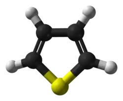 - (organic chemistry) Any of a class of aromatic heterocyclic compounds containing a ring of four carbon atoms and a sulfur atom; especially the simplest one, C4H4S.