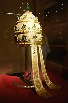- The three-tiered papal crown.