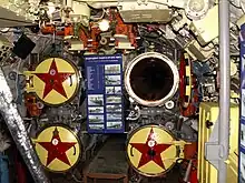 Four torpedo tubes in a Russian submarine at Kaliningrad.