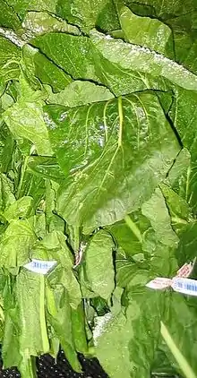 1. The edible leaves of the turnip plant (Brassica rapa).