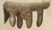 - vaccinia in Charles du Fresne du Cange’s Glossarium Mediæ et Infimæ Latinitatis (augmented edition with additions by D. P. Carpenterius, Adelungius and others, edited by Léopold Favre, 1883–1887)