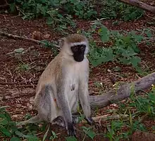 - A small African monkey, Cercopithecus aethiops or Chlorocebus pygerythrus, having a long tail, a black face with white cheek tufts and a greenish-brown coat