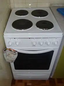 - (often in the plural) a white goods appliance ((white (extended to other colors and materials), larger) appliance – for example a stove, refrigerator, or washing machine)